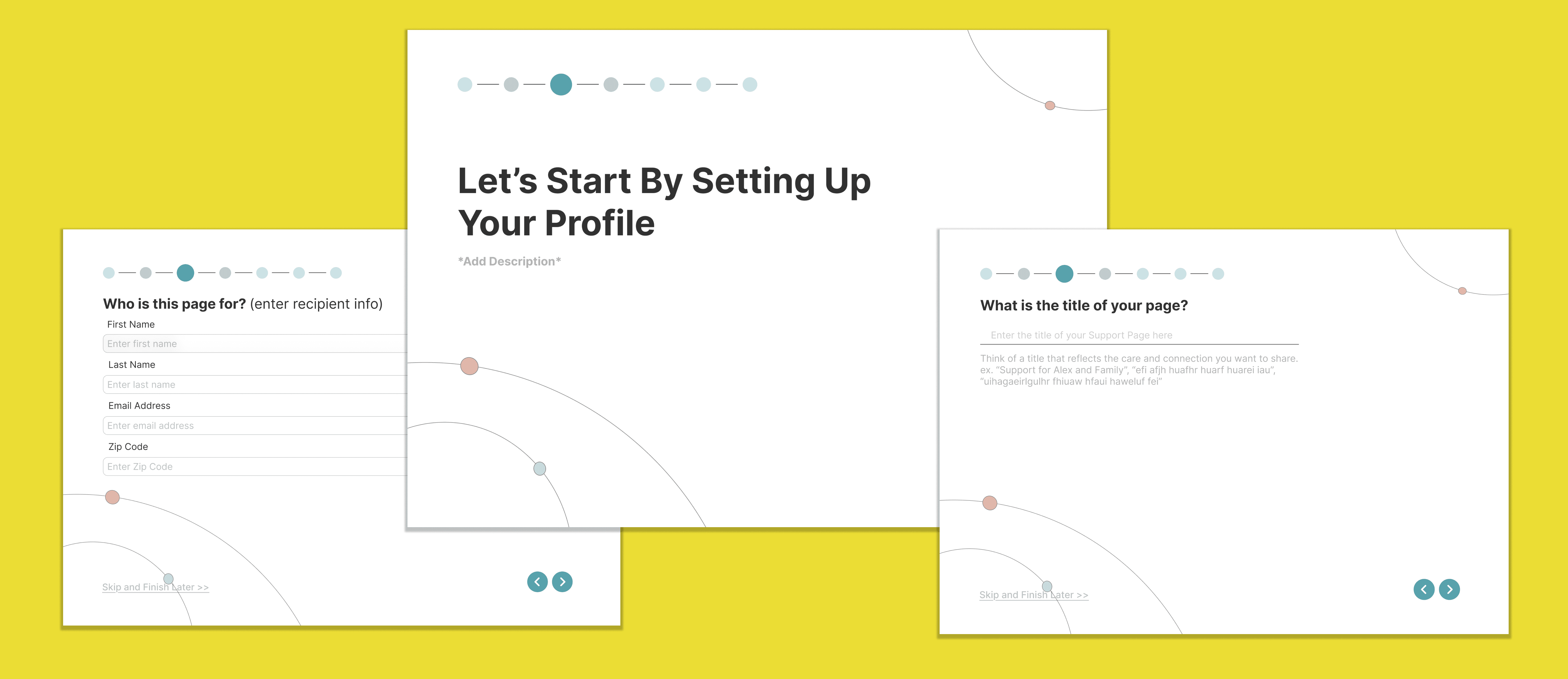 Figure 3.1: Beginning Profile Set-up Pages (Left) and Landing Page (Right)